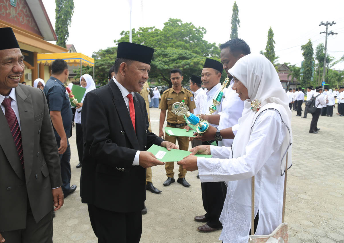 Usai upacara dilaksanakan Walikota Sungaipenuh yang diwakili Sekda Sungaipenuh menyerahkan secara simbolis SK Penyuluh Agama kepada seleksi penyuluh. (fni/nzr/hen)
