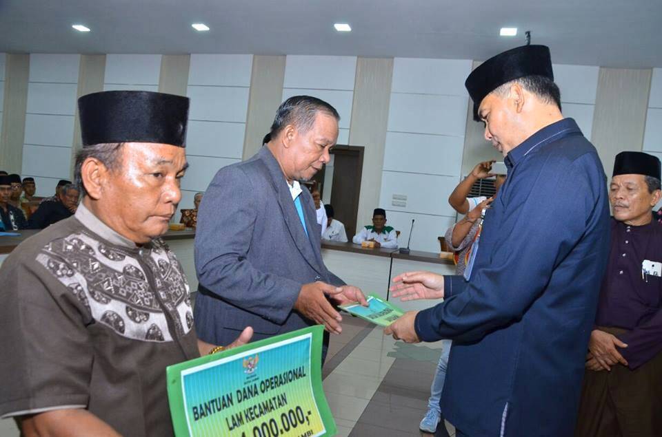 Jambi, AP – Walikota Jambi H. Syarif Fasha ME serahkan bantuan operasional Lembaga Adat Melayu (LAM) tingkat kecamatan dan kelurahan se-Kota Jambi tahun 2016/2017 dari Badan Amil Zakat Nasional (Baznas) Kota Jambi diruang pola kantor Walikota Jambi, Rabu (11/01) kemarin.