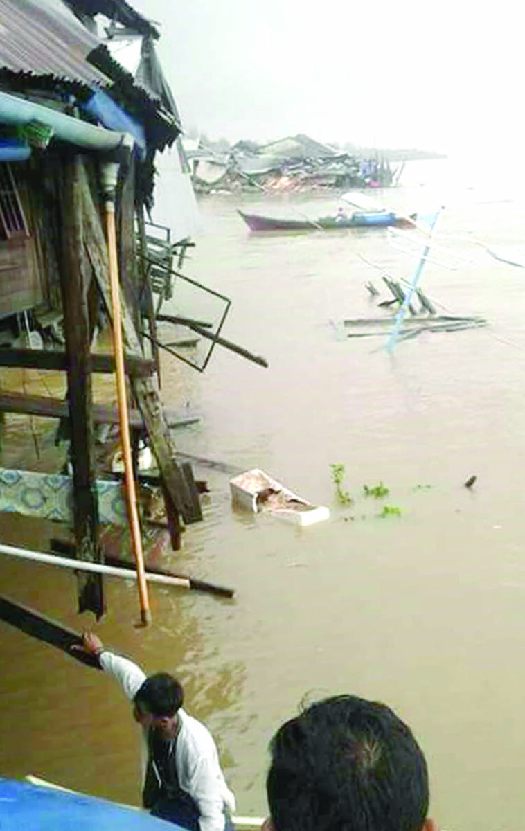 Akibatnya, belasan rumah warga luluhlantak. Bahkan jalan jerambah beton yang belum lama dibangun Pemkab Tanjab Timur ikut ambruk ke dasar sungai. Belum diketahui besar kerugian akibat kejadian ini. Namun diperkirakan mencapai miliaran rupiah. Menurut warga yang melihat kejadian itu, Tongkang 2717 Power yang ditarik tugboat Babo 105 datang dari dalam sungai Batanghari menuju ambang luar. Namun tiba – tiba seperti hilang kendali. Tongkang kemudian terlihat mengarah ke kiri arah perkampungan nelayan. Tak bisa dielakkan, tongkang kemudian menghantam jerambah beton yang dibangun Pemkab, tepatnya di RT 10 kelurahan Tanjungsolok. Karuan saja rumah warga yang berada di sisi dalam jerambah ikut hancur akibat dihantam sisi jerambah. Tak berhenti di situ, tongkang yang semakin liar bukannya terhenti, tapi malah mengarah ke anak sungai di ujung jerambah dan begitu cepat kembali menghantam perkampungan RT 12 yang berada persis di sisi lain anak Sungai. Akibatnya, 12 rumah berkonstruksi kayu dan sebuah jerambah utama langsung roboh.