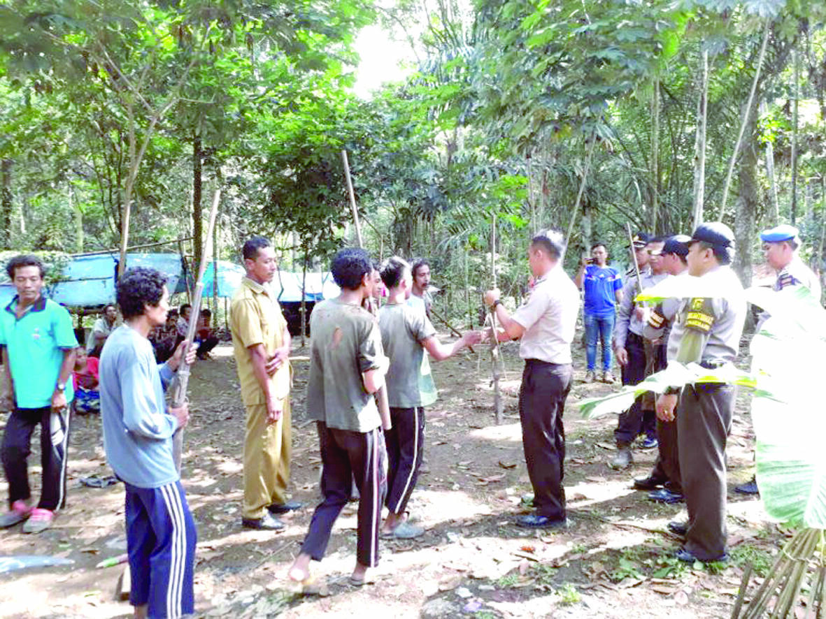 Dalam kunjungan Kapolsek Pamenang AKP Sampe Nababan SH, MH ke tempat Suku Anak Dalam (SAD) di Dusun Duren Desa Lantak Seribu kemarin, menghimbau kepada suku anak dalam, untuk meyerahkan senjata api atau kecepek epada aparat kepolisian.