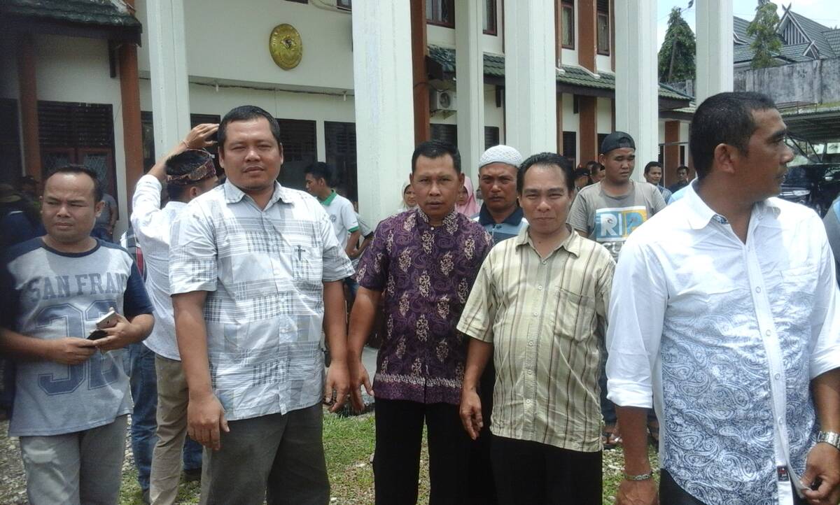 Sidang kasus perambahan hutan dengan agenda pembacaan putusan, dimulai pukul 11.00 Wib hingga pukul 12.00 Wib. Sidang dijaga ketat aparat keamanan dan dihadiri puluhan warga desa Ladang Panjang.