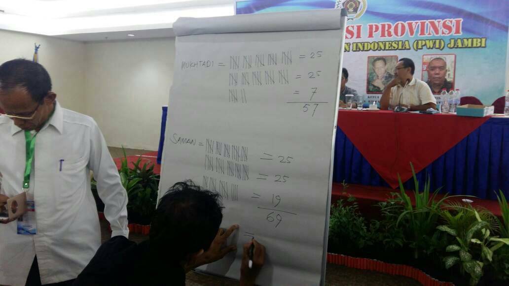 Jambi, AP-Setelah berjalan alot, Pemilihan ketua Persatuan Wartawan Indonesia (PWI) Daerah Privinsi Jambi akhirnya berlangsung sukses, dengan memiliki 129 suara dan diperebutkan oleh dua pasang calon, yaitu Muhtadi Putra Nusa dan Saman.