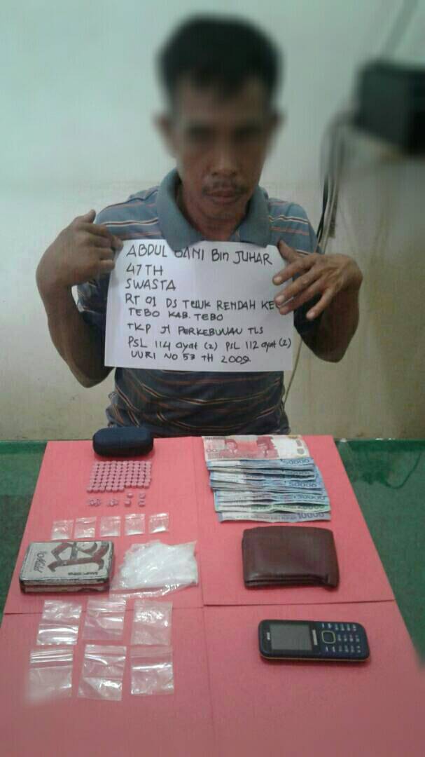 Pelaku pengedar barang haram ini atas nama Abdul Gani Bin Juhar (47) Warga RT 01 Kelurahan Teluk Rendah Kecamatan Tebo Ilir, Kabupaten Tebo.