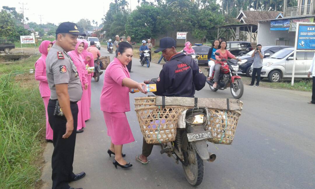 Giat Kapolsek Sabak barat, Iptu Agus Alexander purba bersama ibu ketua ranting dan personil Polsek Muara Sabak Barat ini, tidak memilih untuk memberikan takjil kepada siapapun yang melintas.
