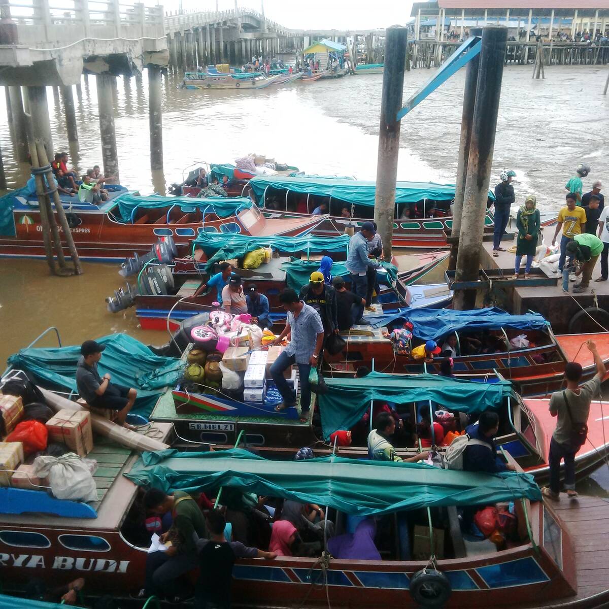 Jambi, AP – Penumpang arus balik Lebaran 2017 yang melakukan perjalanan melalui Pelabuhan Kuala Tungkal, Kabupaten Tanjung Jabung Barat (Tanjabbar) Provinsi Jambi memadati kawasan pelabuhan itu pada Sabtu dan Minggu.