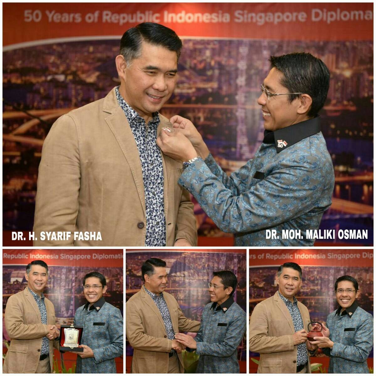 Jambi, AP – Wali Kota Jambi H. Syarif Fasha menyampaikan apresiasi dan penghargaan yang tinggi atas kehadiran Dr. Mohamad Maliki Osman di Kota Jambi. Hal tersebut disampaikannya saat menghadiri The Rising 50 Reception, yang juga dihadiri Menteri Pertahanan dan Hubungan Luar Negeri Singapura, Mohammad Maliki bin Osman beserta rombongan, di Ballroom Swissbel Hotel Jambi, Kamis malam (27/7).