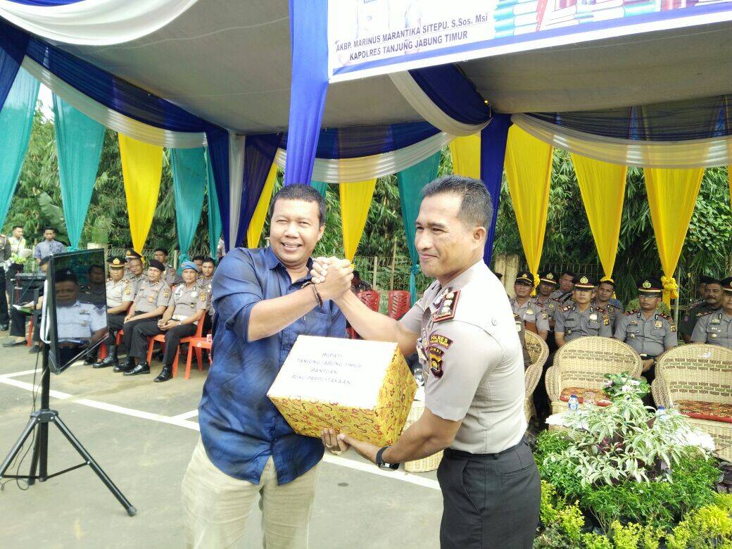 Muarasabak, AP – Bupati Kabupaten Tanjung Jabung Timur (Tanjabtim), H Romi Hariyanto menghadiri Launcing Gemar Membaca (Gema) Bhayangkara Polres Tanjabtim pada hari kamis (31/08) lalu. Dalam kesempatan itu, orang nomor satu di bumi sepucuk nipah serumpun nibung memberikan bantuan buku baca kepada Kapolres AKBP Marinus Marantika Sitepu secara simbolis.