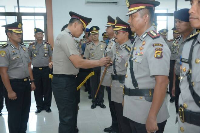 JAMBI – Tiga pejabat utama Polda Jambi serta Kapolres Batanghari resmi diganti. Ini setelah dilangsungkannya serah terima jababat (sertijab) dari pejabat yang lama kepada pejabat baru, Jumat (22/9).