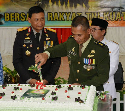 Sementara Kasrem 042/Gapu Letkol Inf Yudi Ruskandar, mengaku tidak menyangka di hari berbahagia TNI mendapatkan kue ulang tahun dari Kapolda Jambi.