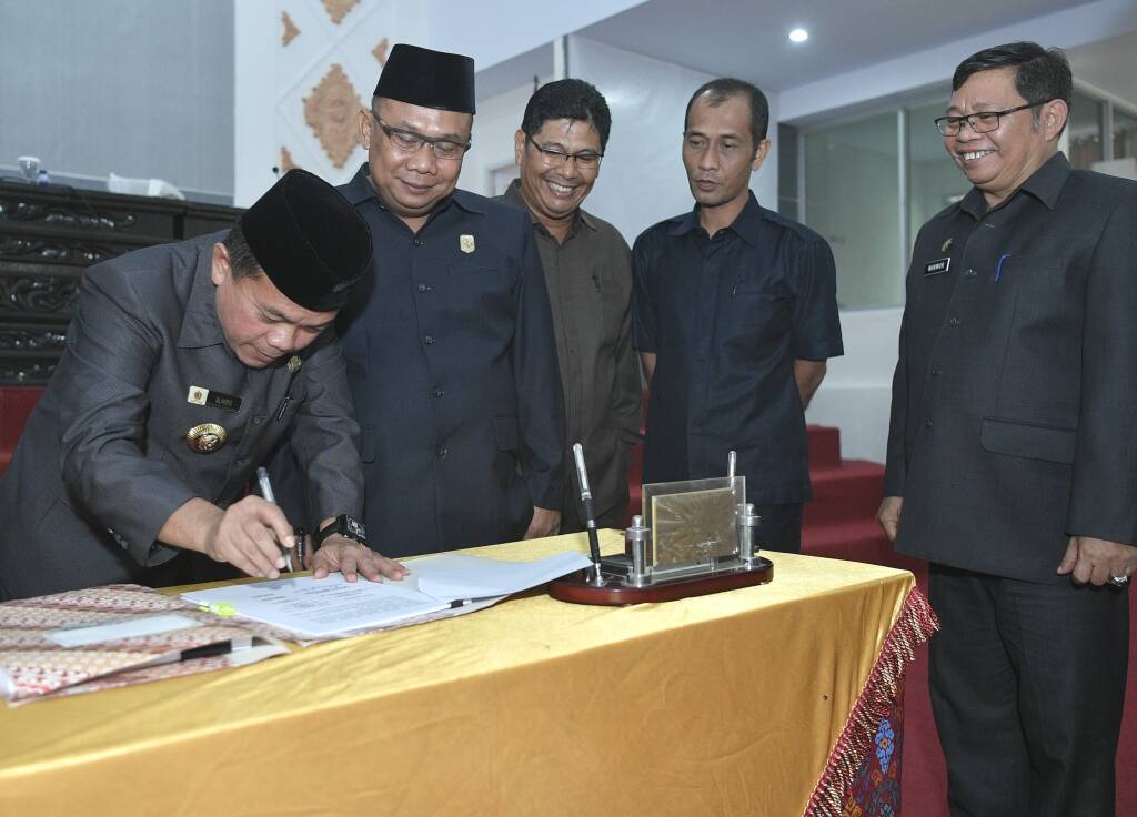 Penandatangan tersebut, dilakukan bupati bersama unsur pimpinan Dewan pada rapat paripurna DPRD Merangin, yang berlangsung di Aula Utama Gedung DPRD Merangin.