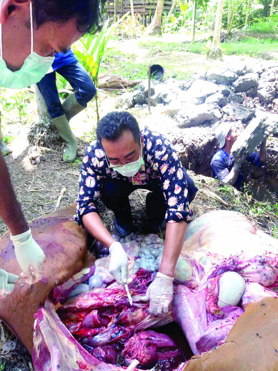 Dijelaskannya, dari hasil labor tersebut, pihaknya langsung melakukan upaya-upaya pengobatan kepada ternak-ternak sapi yang ada di Kecamatan Kuala Jambi, dengan cara memberikan vitamin kepada sapi yang sehat. Saat ini pihaknya sudah memberikan vitamin terhadap 123 ekor sapi. “Hal itu dilakukan, agar sapi-sapi yang sehat tidak terserang lagi oleh virus jembrana tersebut. Sampai dengan tanggal 9 November lalu, ada 10 sapi mati yang terserang virus jembrana,” jelas Radjito.
