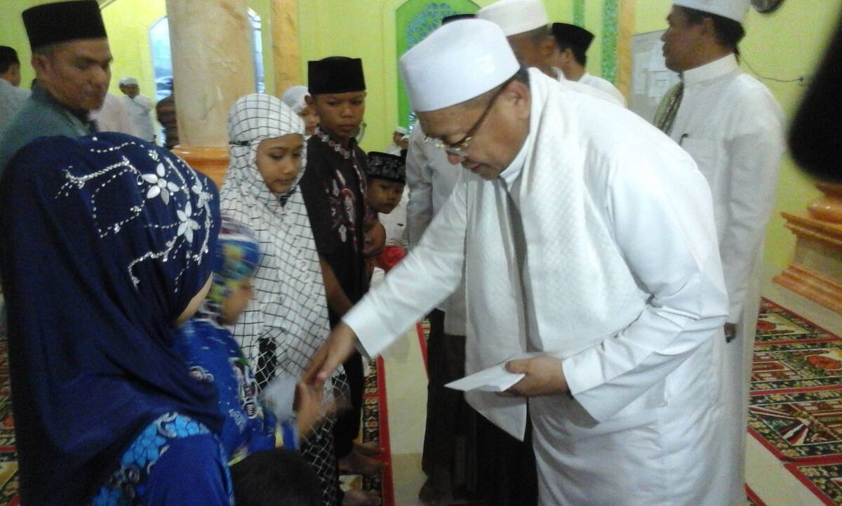 Kumudiam H Cek Endra memberikan bantuan berupa uang kepada beberapa orang anak yatim.