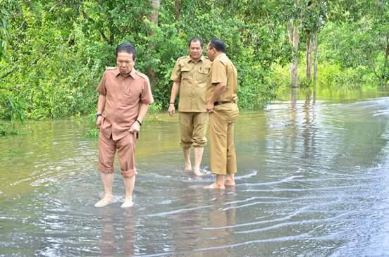 Pada kesempatan itu Bupati memerintahkan agar pihak Dinas PUPR berkoordinasi dengan Dinas PU Propinsi Jambi dan BPDB. Untuk saat ini jalan yang menuju ke arah belakang pasar baru rusaknya bukan diakibatkan oleh tonase kendaraan pengguna jalan melainkan disebabkan oleh bencana alam seperti saat ini banjir.