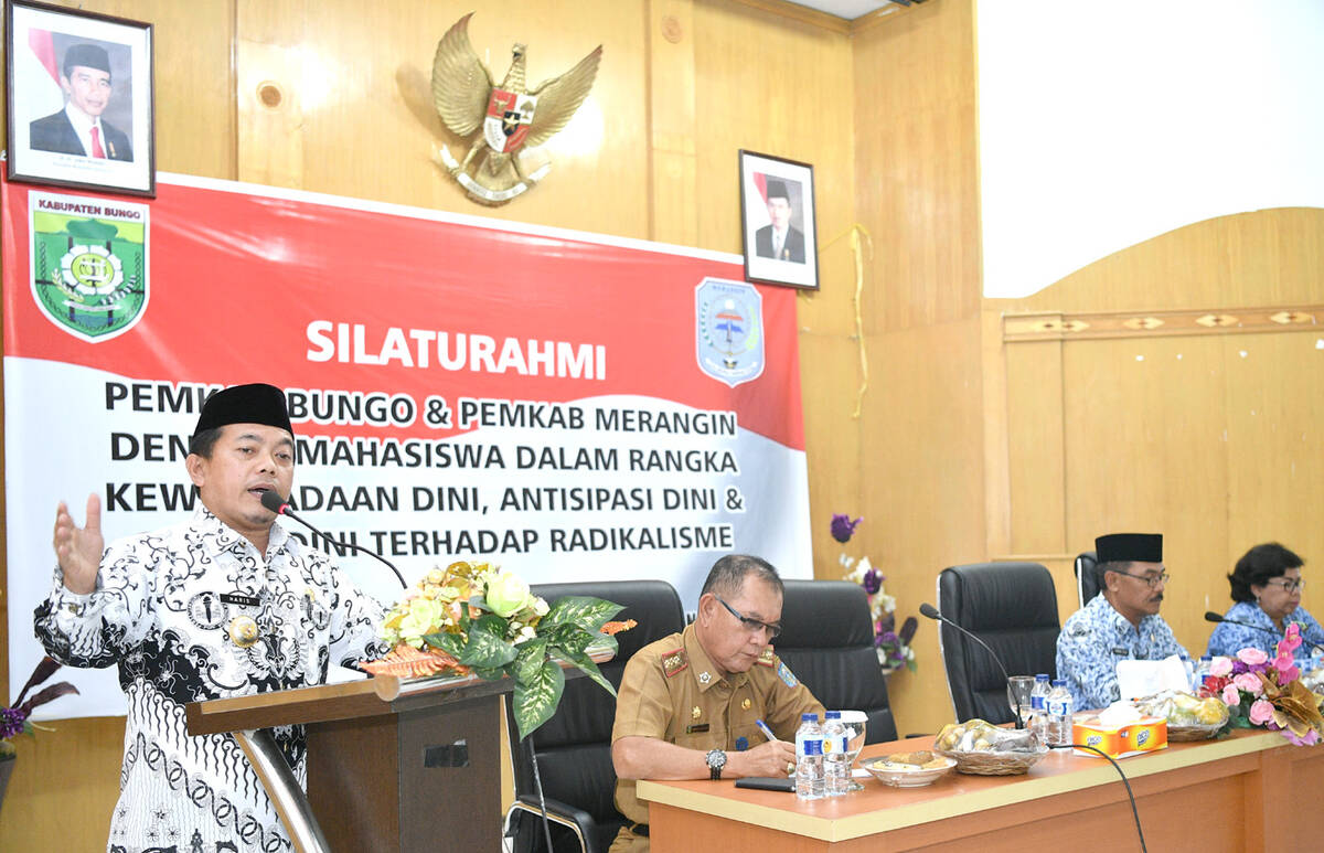 Hal tersebut tegaskan Bupati Merangin H. Al Haris pada acara Silturahmi Pemkab Merangin dan Bungo dengan mahasiswa dalam rangka kewaspadaan dini, antisipasi dini dan cegah dini terhadap radikalisme pada Senin (27/11).