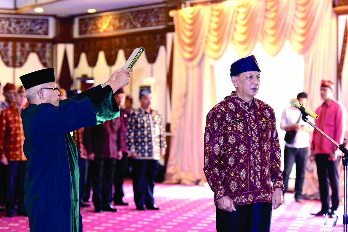 Jambi, AP – Gubernur Jambi, H. Zumi Zola Zulkifli melantik Drs.H.M.Dianto,M.Si sebagai Sekretaris Daerah (Sekda) Provinsi Jambi dalam Pelantikan dan Pengambilan Sumpah Jabatan Pejabat Pimpinan Tinggi Madya Sekretaris Daerah Provinsi Jambi, bertempat di Auditorium Rumah Dinas Gubernur Jambi, Sabtu (02/12) pagi.