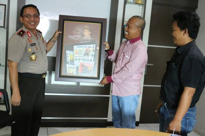 Jambi, AP – Kapolda Jambi, Brigjen Pol Muchlis AS, Rabu (17/1) sore, melakukan kunjungan silaturahmi ke kantor Harian Metro Jambi dan media onlie Metrojambi.com. Kedatangan Kapolda Jambi langsung disambut pimpinan Metro Jambi dan Metrojambi.com.