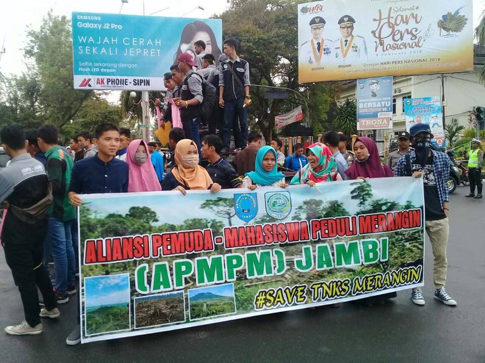 Jambi, AP – Puluhan mahasiswa yang mengatasnamakan dirinya Himpunan Mahasiswa Merangin dan Himpunan Pemuda Merangin mengeruduk kantor Dinas Kehutanan Provinsi Jambi.