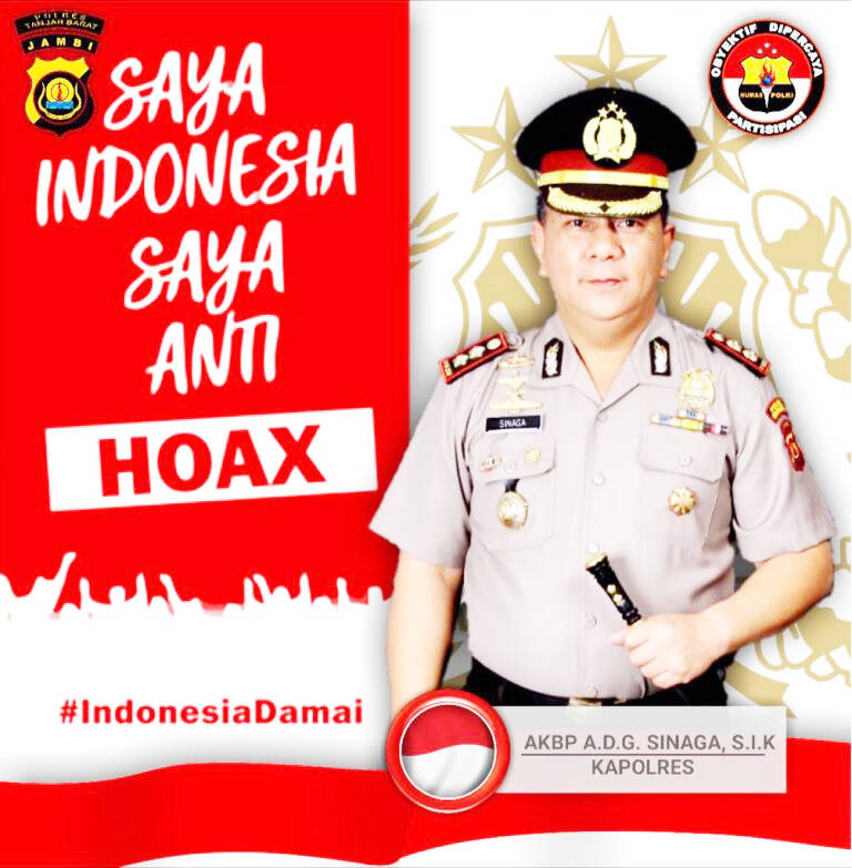 Kualatungkal, AP—Kapolres Tanjab Barat AKBP A.D.G Sinaga,S.I.K mewarning agar masyarakat umum dan masyarakat pengguna media sosial (Sosmed) jangan mudah percaya begitu saja tentang berita yang membuat warga resah. Bila perlu, cari dulu kebenaran dan nara sumber yang jelas atas berita yang diuplode baru ditanggapi.