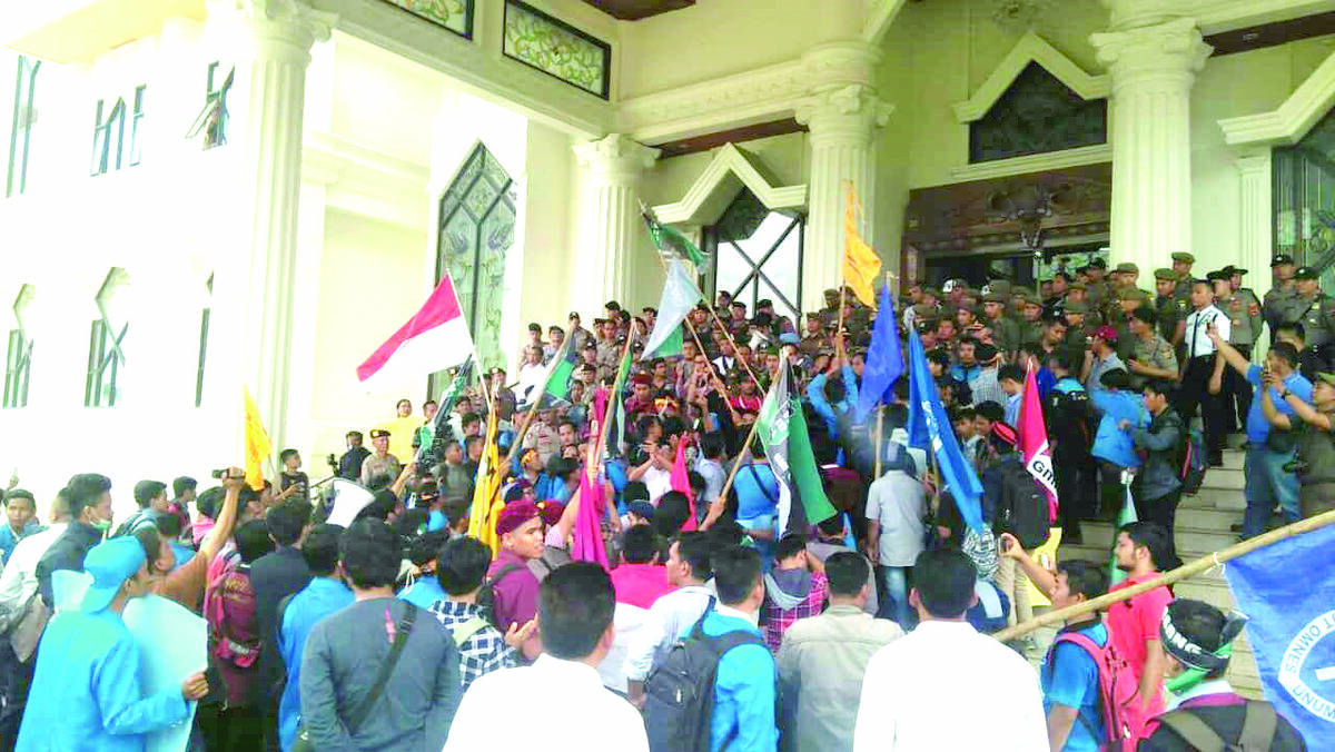 Pantauan dilapangan sempat bentrok atara mahasiswa dengan pihak kepolisian yang berjaga saat aksi berlangsung, dalam orasinya mereka meminta Gubernur Zumi Zola hadir menemui mereka. Namun tidak kunjung ditemui, ratusan mahasiswa ini lantas mencoba memaksa untuk masuk ke kantor Gubernur.