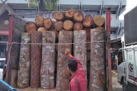 Tujuh truk jenis Canter, Mitsubishi PS-120, dan Toyota Dyna itu memuat berbagai jenis dan ukuran kayu bulat sebanyak 42 meter kubik.