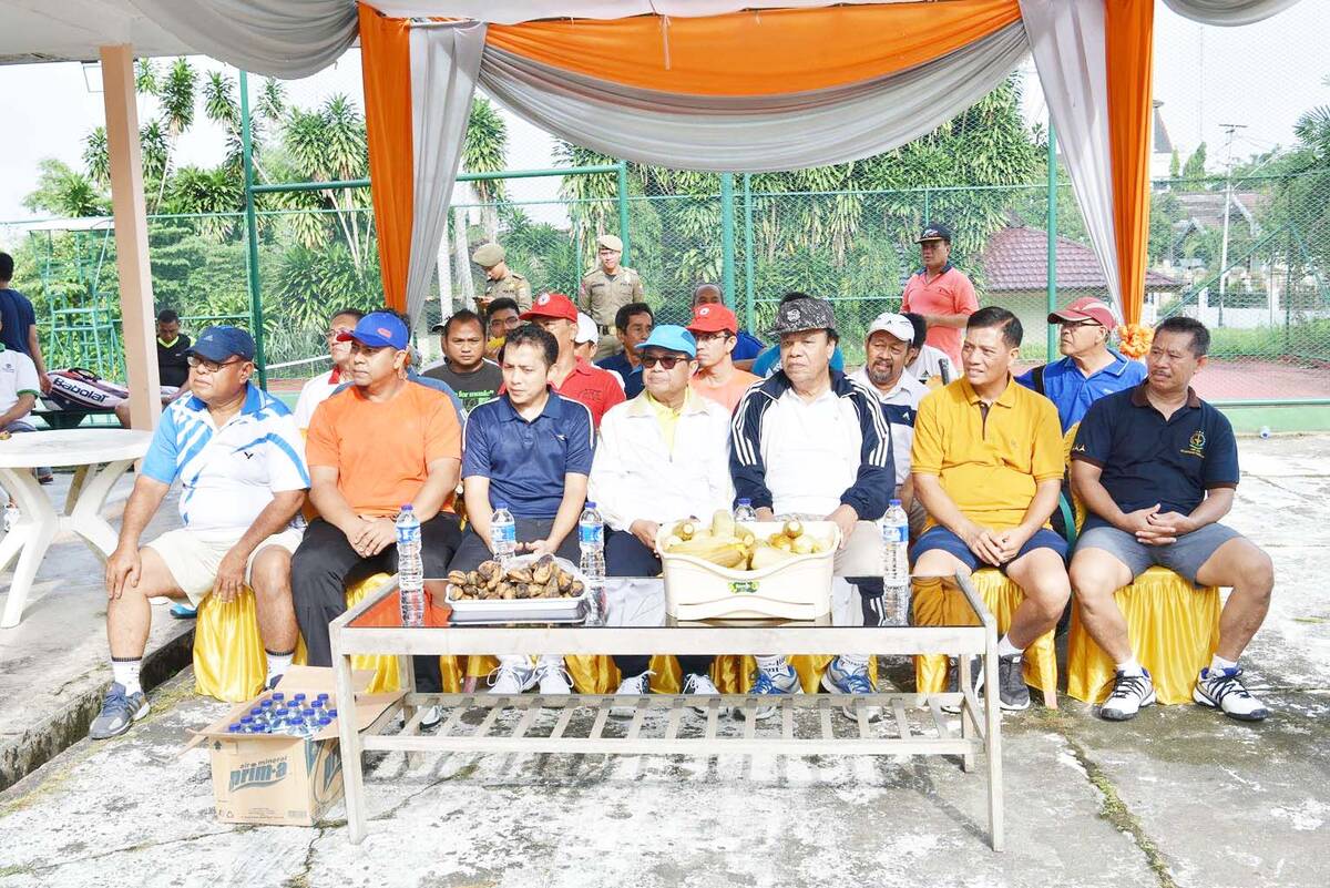 Permainan Tenis Plt. Gubernur Jambi Fachrori Umar/David vs Arfan/Firman dari PT. Semen Padang menjadi pertandingan pembuka. (Syahrul)