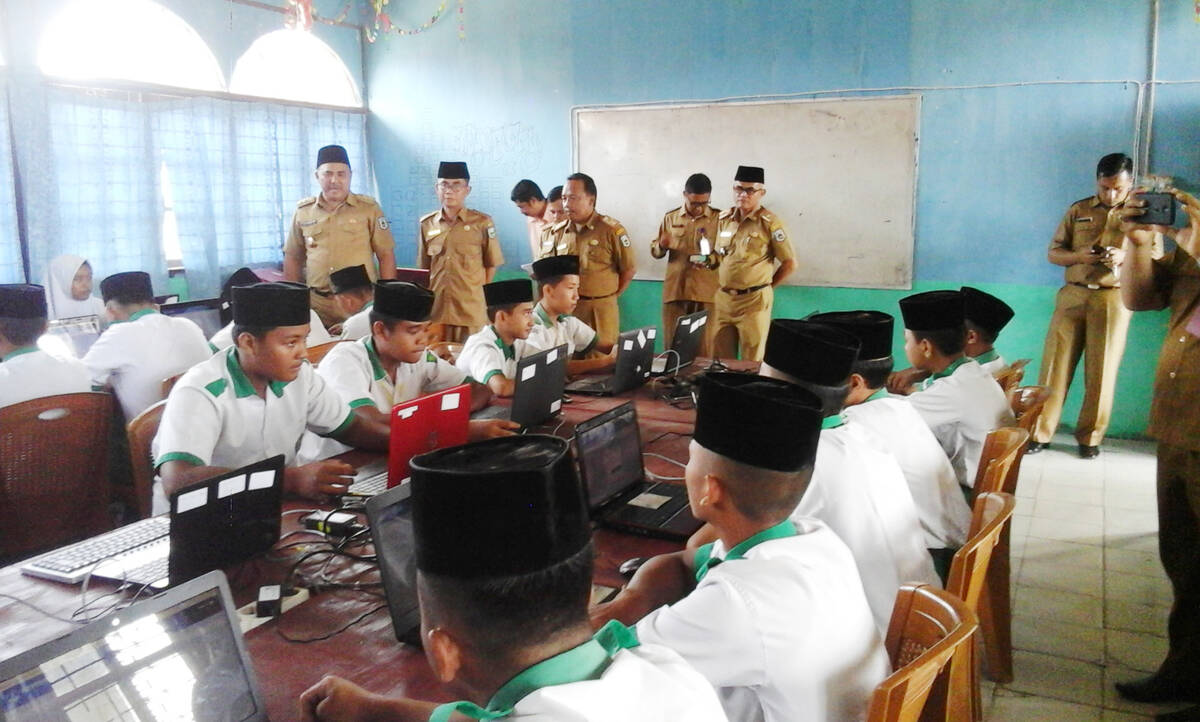 Sarolangun, AP – Wakil Bupati (Wabup) Sarolangun H.Hilallatil Badri meninjau pelaksanaan Ujian Nasional Berbasis Komputer (UNBK) tingkat Sekolah Menengah Pertama (SMP/MTsN) di Sarolangun, Senin (23/04).