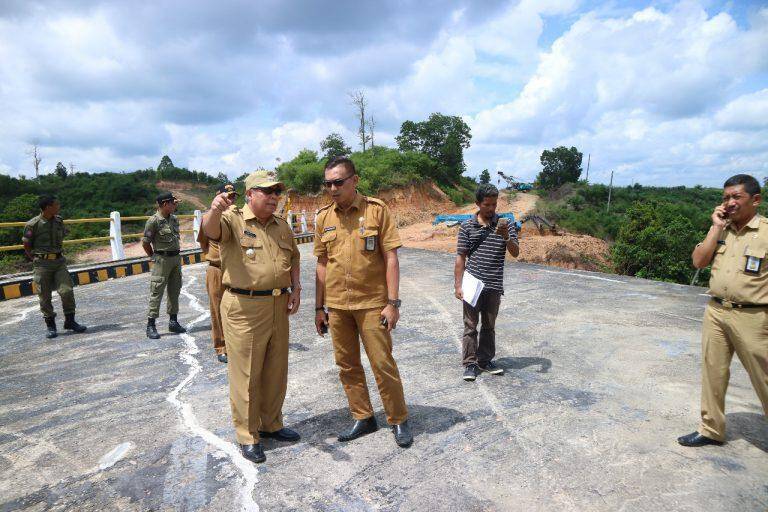 Kualatungkal, AP—Bupati Tanjung Jabung Barat (Tanjabbar), DR. Ir. H. Safrial, MS meninjau pekerjaan fisik pekerjaan jembatan Merlung yang bernama jembatan Layang Sei Merangin dan jalan yang ada di kecamatan Merlung dan Jembatan penghubung di wilayah Kecamatan Tungkal Ulu, Selasa (15/05).