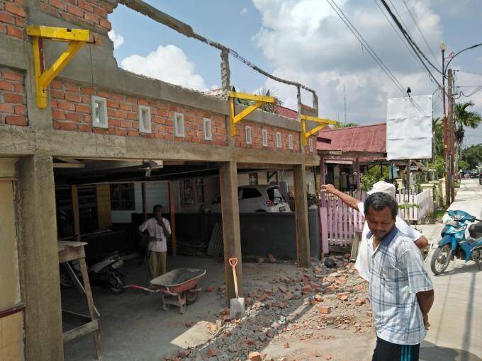 Iapun meminta pengertian dari rekan-rekan media masalah tersebut pihaknya ditegur pak bupati apabila ada yg membangun atau merehap tidak ada izin dan melanggar GSB di jalan Sudirman atau Sriwijaya karena jalan tersebut jalan protokol dikualatungkal menjadi contoh bagi jalan yang lain apalagi tamu dari luar mau ke kantor bupati sering lewat jalan tersebut.