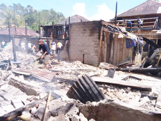 Lebih lanjut Julius mengatakan, dari 10 rumah yang terbakar tersebut, 5 diantaranya rata dengan tanah. Julius juga mengatakan jika warga hanya bisa memadamkan kobaran api dengan peralatan seadanya.