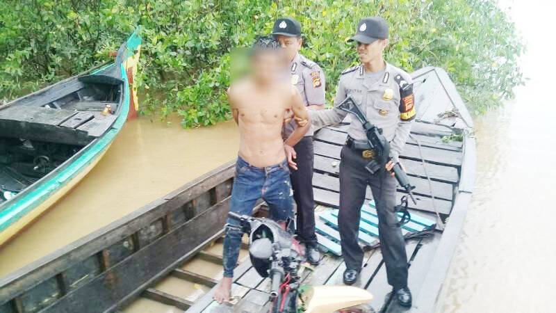 Kepada petugas kepolisian, pelaku mengakui perbuatanya, bahwa telah mencuri satu unit kapal pompong milik warga setempat. Saat penangkapan, pelaku tidak melakukan perlawanan.