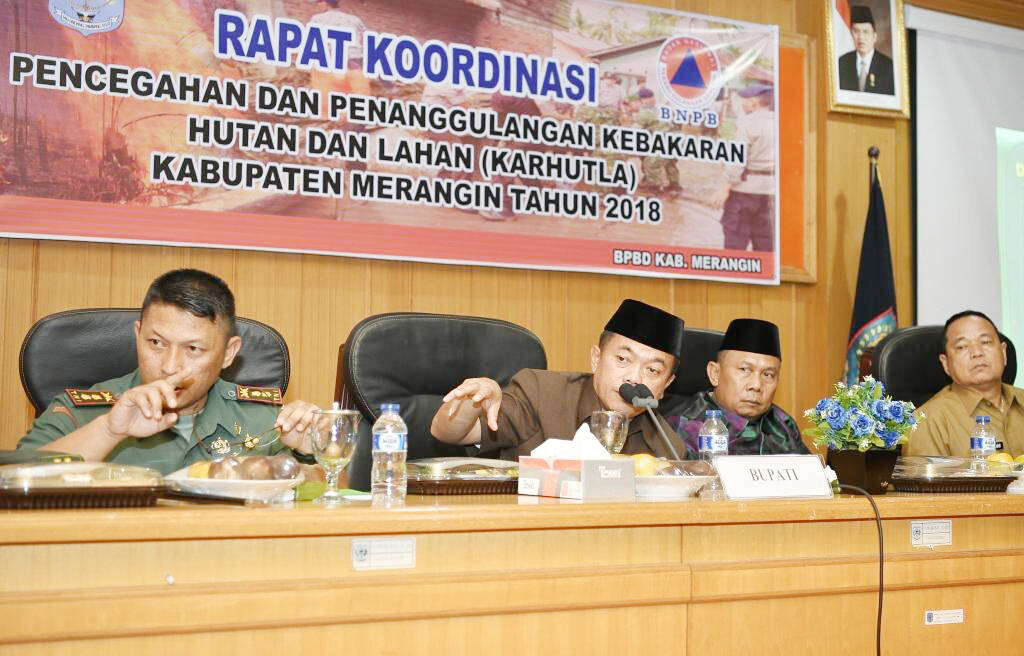 Bangko AP -Bupati Merangin H Al Haris kemarin (17/7) membuka rapat koodinasi (rakor) pencegahan dan penanggulangan kebakaran hutan dan lahan (Karhutla) Kabupaten Merangin 2018.