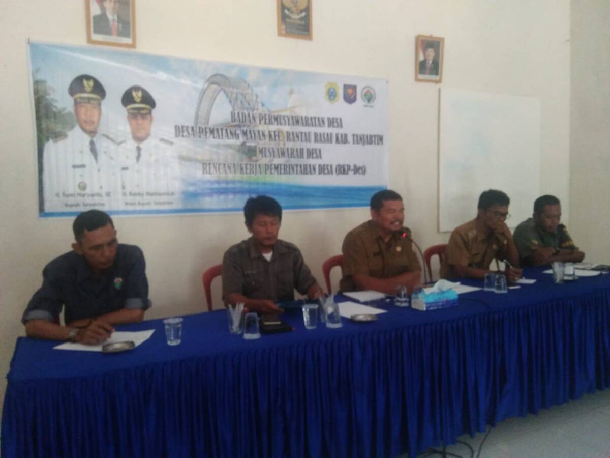 Muarasabak,AP – Dalam rangka penyusunan Rencana Kerja Pemerintah desa (RKPdesa) tahun anggaran 2019 mendatang, maka pada hari senin (20/8) siang tadi, pihak pemerintah Desa Pematang mayan, Kecamatan Rantau rasau, Kabupaten Tanjung Jabung Timur (Tanjabtim) menggelar Musyawarah Desa (Musdes).