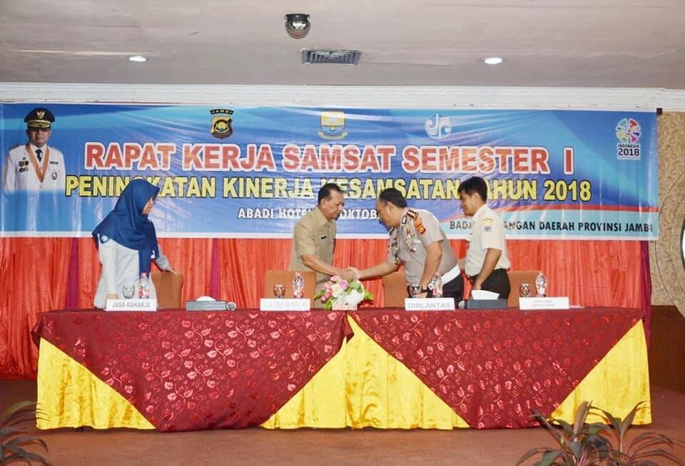 Kepala Badan Keuangan Daerah Provinsi Jambi (Bakeuda), Agus Pirngadi menyatakan agenda rapat kerja Samsat semester I ini meliputi peningkatan kinerja kesamsatan tahun 2018, inventarisir permasalahan yang dihadapi pada masing – masing Samsat se-Provinsi Jambi, dan upaya upaya yang perlu dilakukan untuk peningkatan penerimaan pajak daerah.