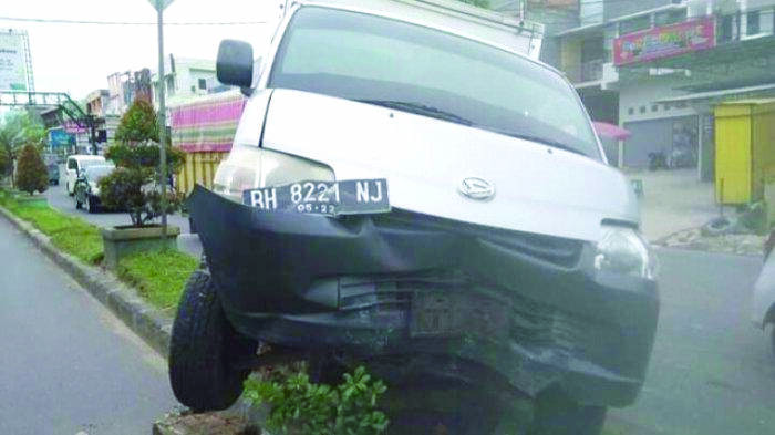 Pikap Naik ke Pembatas Jalan