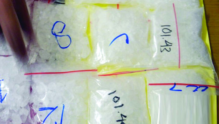 “Paket paket sabu dimasukkan kotak teh dan jaket warna biru dongker tersebut berjumlah enam paket sedang,” katanya.