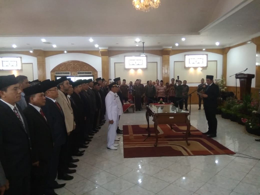 Sekda dalam sambutanya menggatakan, untuk pejabat yang dilantik, tidak ada interpensi dari pihak manapun dan tidak ada hubungannya dengan politik, murni karena prestasi dan layak untuk menjabati bidang yang diembannya.