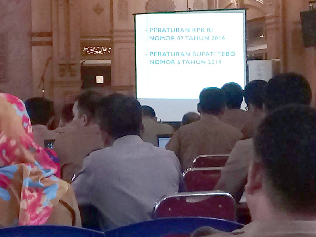 Muaratebo, AP – Wakil bupati (Wabup) Tebo Syahlan Arpan,S H kepada pejabat Aparatur Sipil Negara (ASN) eselon II dan III dilingkup Pemkab Tebo saat membuka sosialisasi Laporan Harta Kekayaan Penyelenggara Negara (E-LHKPN) secara elektronik di aula utama komplek perkantoran bupati mewanti-wanti jangan sampai terlambat dalam melaporkan harta kekayaannya kepada KPK setiap tahun, paling akhir hingga 31 Maret.