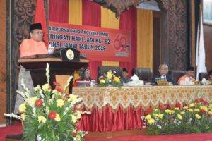 Jambi AP – Pelaksana Tugas (Plt) Gubernur Jambi, Dr.Drs.H.Fachrori Umar,M.Hum mengajak semua pihak, semua aktor pembangunan, untuk bersatu padu, bersinergi membangun Provinsi Jambi, supaya Provinsi Jambi, Negeri Sepucuk Jambi Sembilan Lurah, lebih maju, lebih berdaya saing, dan masyarakatnya semakin sejahtera. Hal tersebut dikemukakan oleh Fachrori dalam Rapat Paripurna DPRD Provinsi Jambi dalam rangka Memperingati Ulang Tahun ke-62 Provinsi Jambi Tahun 2018, di Gedung DPRD Provinsi Jambi, Senin (7/1) siang.