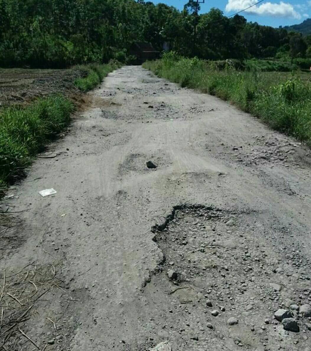 Pantauan dilapangan, disepanjang jalan terlihat lobang yang mengangga, bahkan nyaris tidak terlihat lagi jalan yang beraspal. Parahnya lagi, musim hujan kondisi jalan bagaikan kerbau di sawah, sehingga sangat rawan kecelakaan. Kondisi ini juga membuat warga kesulitan mengeluarkan hasil pertanian.