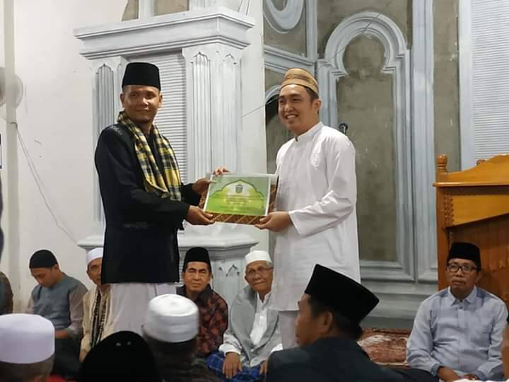 Pada kesempatan Safari Ramadhan di Mesjid Tsamaratul Ihsan, Kampung Tengah, kecamatan Koto baru, ketua DPRD kota Sungaipenuh, menyerahkan bantuan dari pemerintah kota Sungaipenuh, untuk pembangunan Mesjid, sebanyak Rp.10 juta. (hen)
