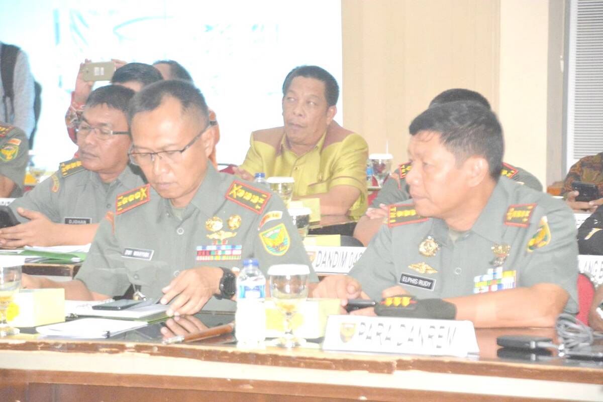 Bersama Dandim Batanghari Letkol Inf Widi Rahman, Elphis mengikuti Rapat Koordinasi Teknis (Rakornis) TNI Manunggal Membangun Desa (TMMD) Ke-105 Tahun 2019 bersama Pangdam II Sriwijaya melalui Video Conference bersama Kasad Jenderal TNI Andika Prakasa dan Menteri Sosial RI, di Gedung Sudirman Makodam, Palembang, Kamis (20/06). Dengan tema Bersama TMMD Membangun Untuk Meningkatkan Kesejahteraan Masyarakat.