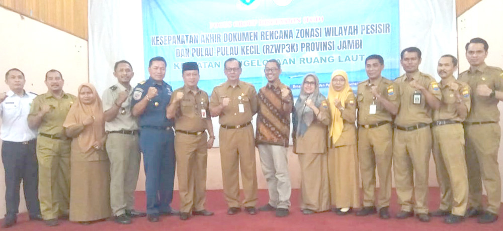 Jambi, AP – Kesepakatan akhir dokumen Rencana Zonasi Wilayah Pesisir dan Pulau Pulau Kecil (RZWP3K) provinsi Jambi telah rampungkan dan siap untuk disampaikan kepada Kementrian Kelautan dan Perikanan Republik Indonesia, Kesepakatan ini diperoleh pada FGD RZWP3K yang berlangsung di Aula Dinas Kelautan dan Perikanan Propinsi Jambi, Senin (8/7/2019).