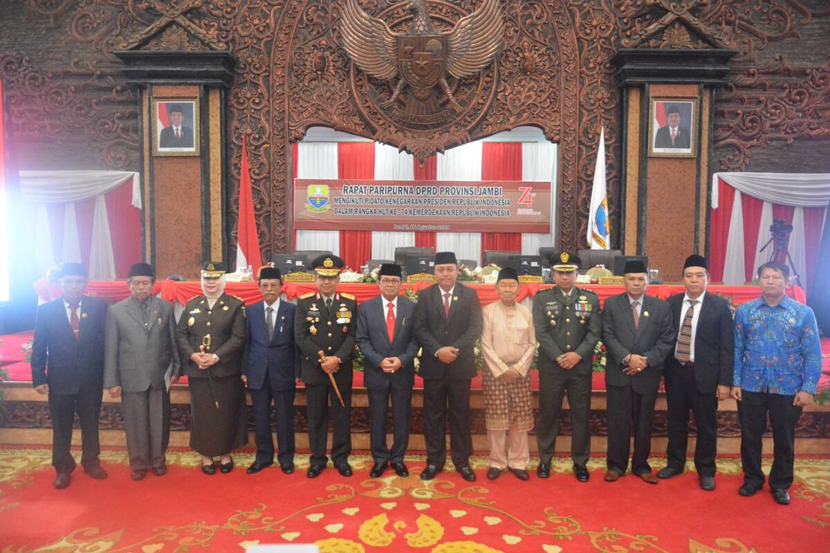 Forum Komunikasi Pimpinan Daerah (Forkopimda) Provinsi Jambi, Sekretaris Daerah Provinsi Jambi, Drs.H.M. Dianto,M.Si, Ketua Legiun Veteran Provinsi Jambi, para kepala Organisasi Perangkat Daerah (OPD) Lingkup Pemerintah Provinsi Jambi, para pimpinan atau yang mewakili dari instansi vertikal yang ada di Provinsi Jambi, dan para undangan lainnya turut hadir dalam rapat paripurna yang dipimpin oleh Ketua DPRD Provinsi Jambi, Ir.H.Cornelis Buston terseebut.