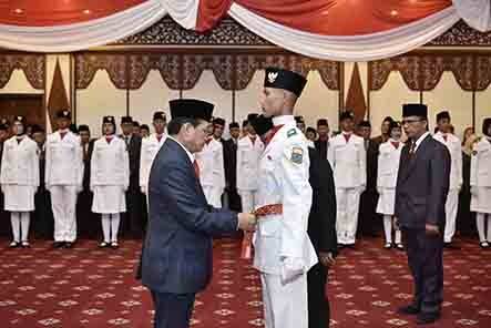 Rombongan Pakibraka berbaris rapi di dalam aula Rumah Dinas Gubernur. Sementara dibelakangnya tampak para orang tua ikut menyaksikan prosesi pengukuhan.
