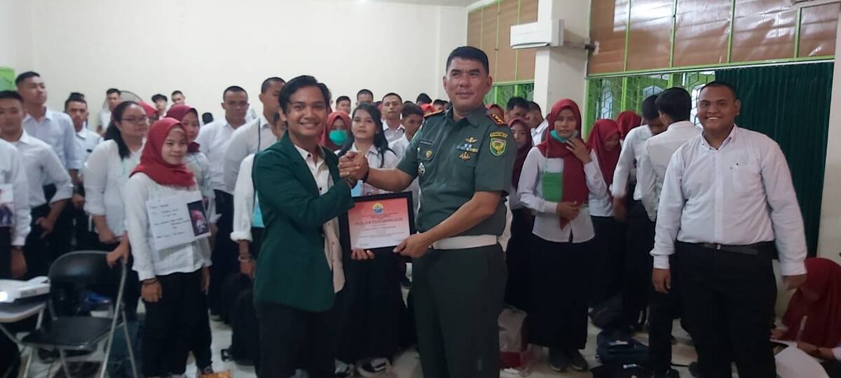 Aksi Post.com- Dandempom II/2 Letkol CPM Ucok Simanjutak, isi materi tentang wawasan kebangsaan dan bela negara, di Fakultas Hukum Universitas Batanghari (Unbari), Rabu (11/09).