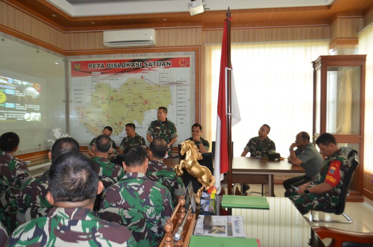 Jambi, AP – Komandan Korem 042/Gapu Kolonel Arh Elphis Rudy,M,Sc,S.S Menerima kunjungan dari Tim Pengendalian Program dan Anggaran (Dalproggar) TNI AD Semester II Tahun 2019 yang diketuai oleh Kolonel Inf Henry Bathara bertempat di Ruang Kerja Danrem 042/Gapu di Makorem 042/Gapu Jambi, Jum’at (18/10/19).