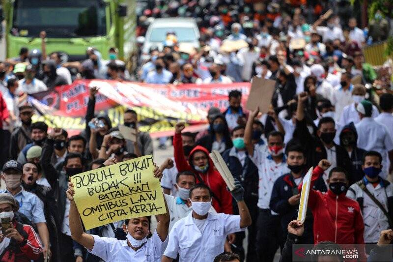 “Bilamana UU Cipta Kerja ditandatangani presiden dan sudah ada nomornya, maka KSPI dan beberapa serikat buruh akan melakukan aksi serentak nasional untuk menolak UU Cipta Kerja,” kata Said Iqbal dalam keterangan tertulisnya, Senin (26/10).