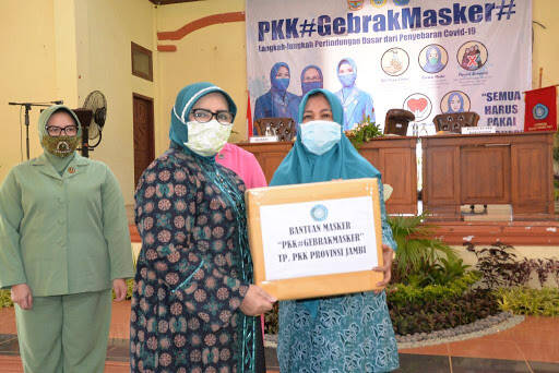 Rahima mengatakan TP PKK Provinsi Jambi telah melakukan pembagian masker sejak bulan April yang lalu. “Kita berharap melalui program Gebrak Masker ini secara bersama-sama dengan TP PKK Kabupaten/ Kota, kita dapat membantu dan meminimalisir beban masyarakat yang terdampak Covid-19 serta mencegah penularan Covid-19 yang sangat mengkhawatirkan semua pihak. Melalui program PKK Gebrak Masker ini kita perkuat peran PKK untuk membantu masyarakat secara meluas hingga ke tingkat dasa wisma. PKK Harus hadir menjadi pelopor dan pelapor dalam mencegah penularan wabah Covid-19 yang sangat berbahaya dan mempengaruhi sendi-sendi kehidupan kita,” ujarnya.