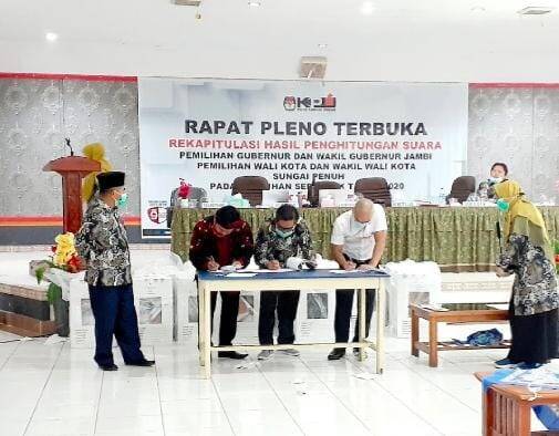 SUNGAI PENUH, AP – Komisi Pemilihan Umum (KPU) Kota Sungai Penuh merampungkan rekapitulasi suara dan menetapkan pasangan Ahmadi Zubir-Alvia Santoni sebagai peraih suara terbanyak di Pilwako Sungai Penuh 2020.