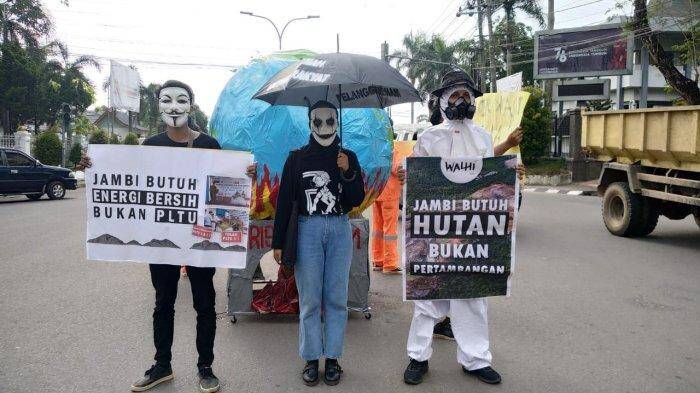 JAMBI – Wahana Lingkungan Hidup Indonesia (Walhi) Jambi menggelar aksi di persimpangan jalan, Kecamatan Telanaipura, Kota Jambi, pukul 15.00 WIB, Jumat (5/11).